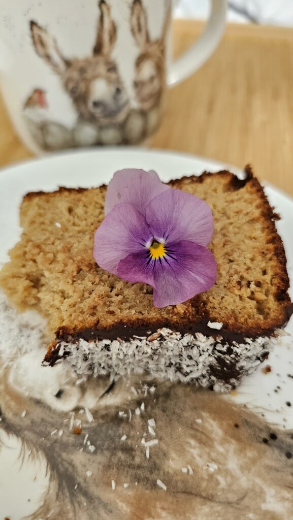 Czekoladę i mleko lekko podgrzej do uzyskania płynnej masy. Polej babkę i posyp kokosem. Odstaw do ostygnięcia.