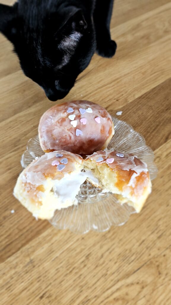 Domowe pączki z lawendowym kremem i lukrem.