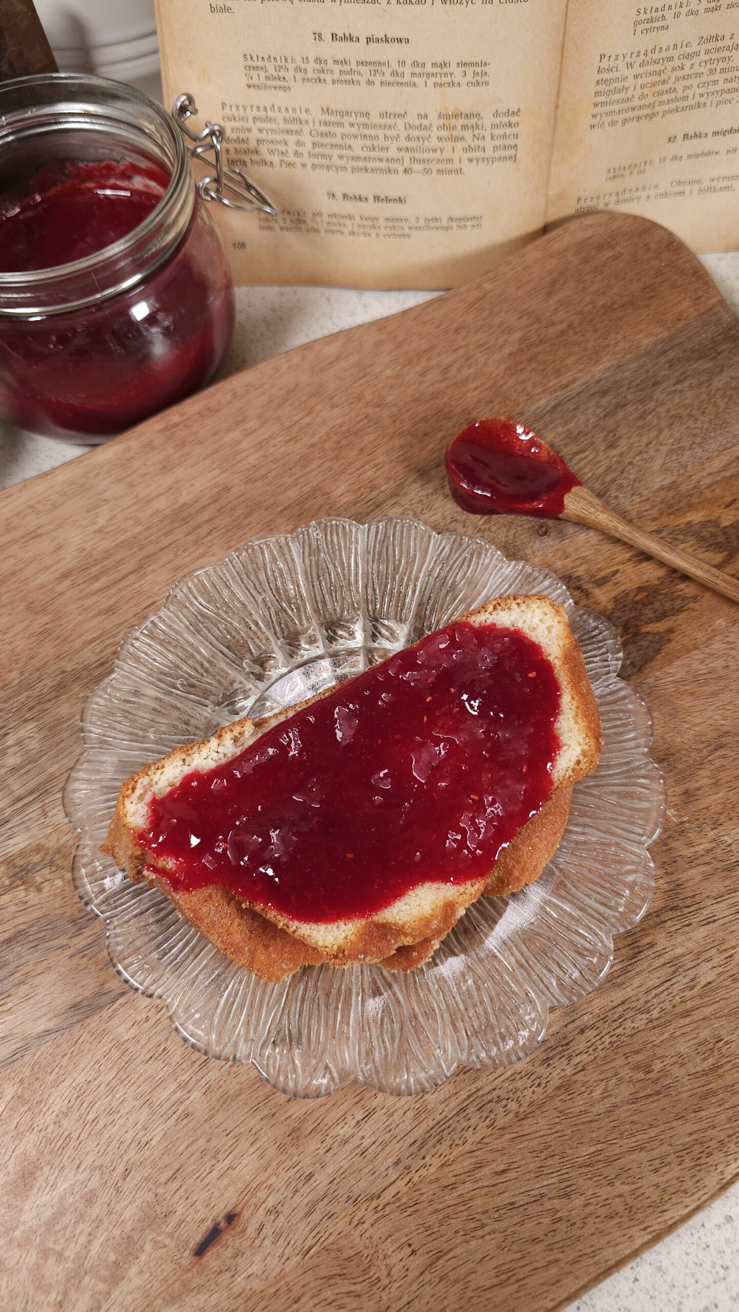 U mnie potrójna porcja. Babkę podałam z konfiturą malinową.