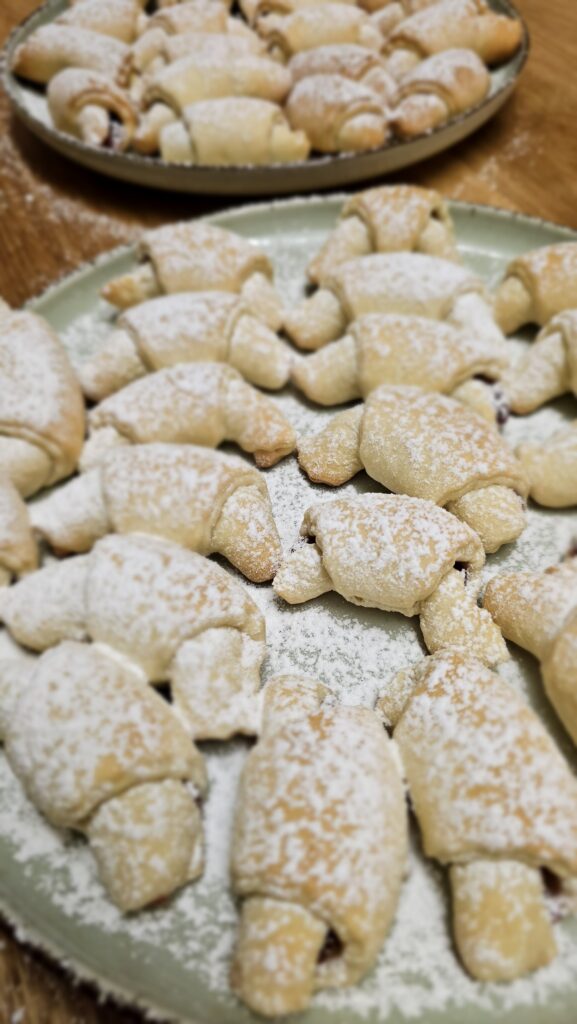 Z tymi rogalikami wiążą się stare wspomnienia. To pierwsze ciastka, które upiekłam po ślubie, a było to już… ponad 20 lat temu. Przepis dostałam od mojej babci i do dzisiaj do niego wracam. Babcia wie co dobre!