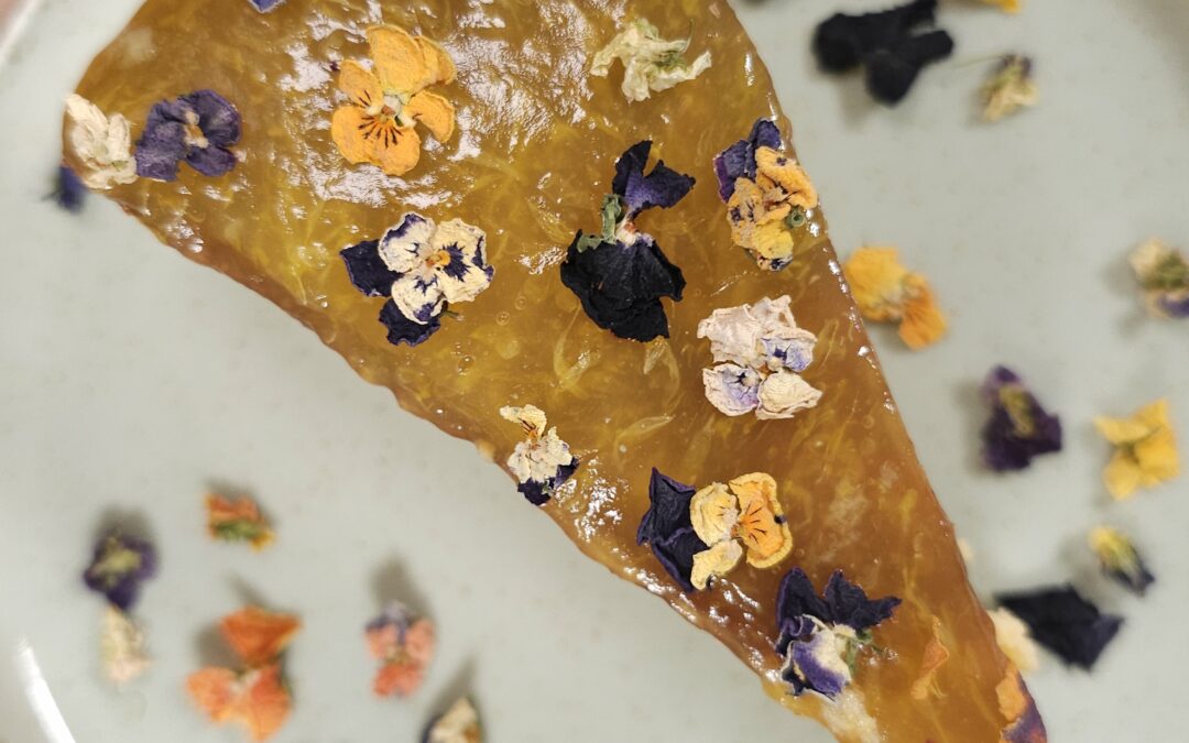 Dynia z pomarańczą to niezawodny duet. Do tego dorzucam garść suszonych bratków i pyszny niedzielny sernik gotowy.